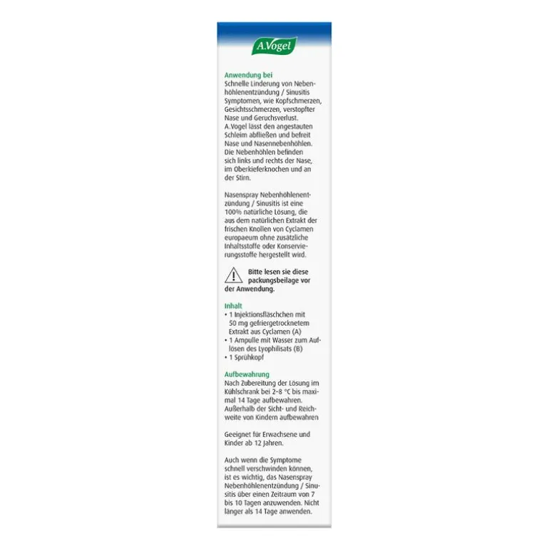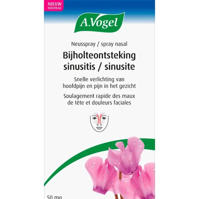 Snelle verlichting van symptomen van bijholteontsteking / sinusitis, zoals hoofdpijn, pijn in het gezicht, verstopte neus en verlies van reuk. A.Vogel neusspray bijholteontsteking / sinusitis voert neusslijm af en reinigt de neus en bijholtes / sinussen. De bijholtes zitten links en rechts van de neus in het bot van de bovenkaak en in het voorhoofd.