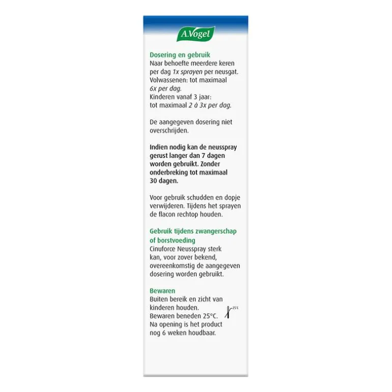 Naar behoefte meerdere keren per dag 1x sprayen per neusgat. Volwassenen: tot maximaal 6x per dag. Kinderen vanaf 3 jaar: tot maximaal 2 à 3x per dag. Tot maximaal 30 aaneengesloten dagen te gebruiken.