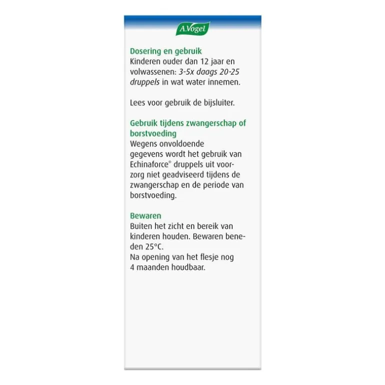 Volwassenen en kinderen die ouder zijn dan 12 jaar kunnen 3 tot 5 keer per dag 20 tot 25 druppels innemen. Je kunt deze druppels het beste met wat water innemen.