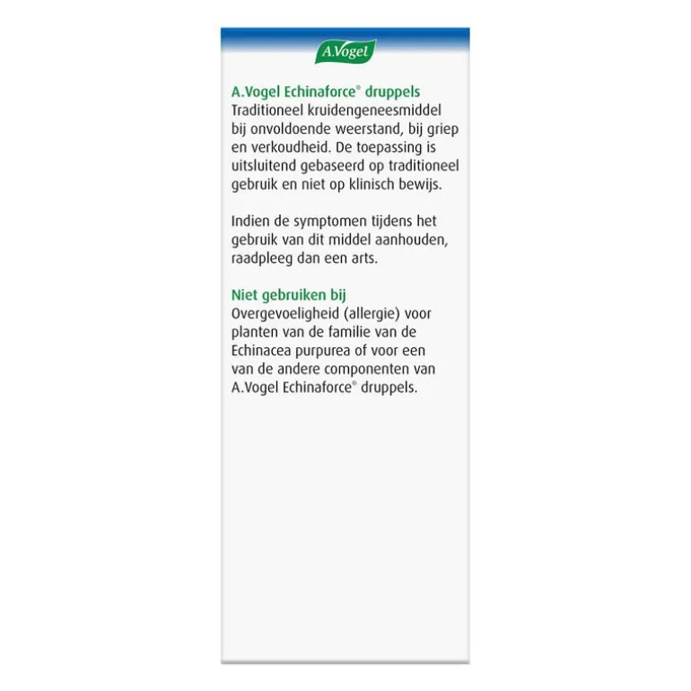 De Echinacea purpurea (rode zonnehoed) staat al sinds jaar en dag bekend om haar versterkende invloed op het immuunsysteem. Echinaforce kan gebruikt worden als de “R” in de maand is, bij onvoldoende weerstand of zodra de eerste symptomen van griep of verkoudheid opkomen. Je kunt hierbij denken aan een slap, hangerig gevoel, keelpijn, niezen, een loopneus, koorts en vermoeidheid. En als er toch sprake is van griep of verkoudheid, dan helpt Echinaforce de symptomen ervan te verminderen en herstel te versnellen.
