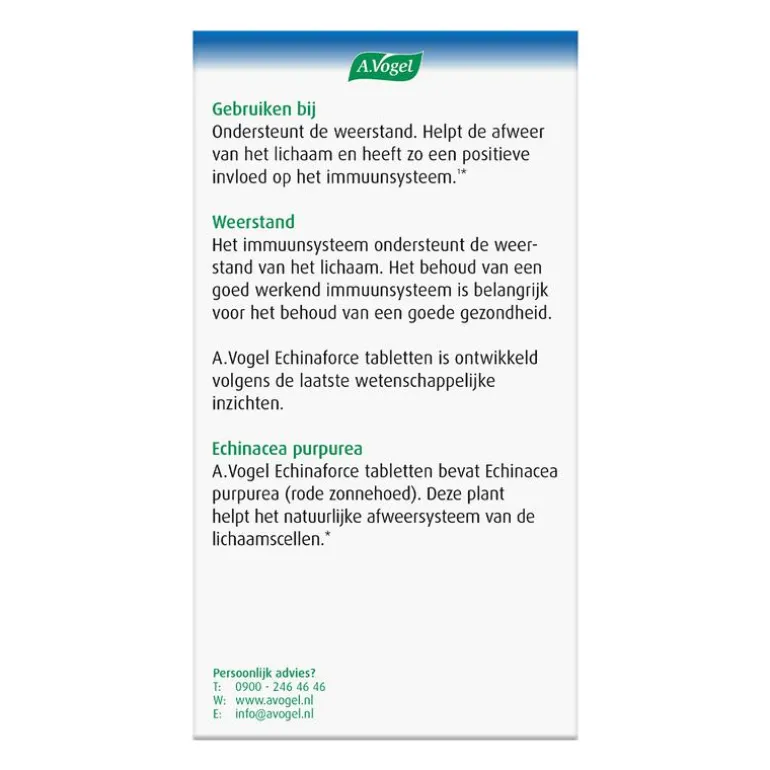 Deze Echinaforce gebruik je voor de ondersteuning van de weerstand en de afweer van het lichaam1*. Hoe? Het immuunsysteem hangt samen met de weerstand van het lichaam. Het behoud van een goed werkend immuunsysteem (en dus een weerstand) is belangrijk voor het behoud van een goede gezondheid. A.Vogel Echinaforce ondersteunt de weerstand1*.