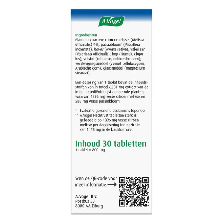 Een goede nachtrust is niet voor iedereen vanzelfsprekend. Zo’n 52% van de Nederlanders kan wel wat extra ondersteuning gebruiken om lekker te slapen1,2*. Dormeasan Citroenmelisse sterk** tabletten van A.Vogel ondersteunt je daarbij en helpt bovendien om fris en uitgerust wakker te worden1,2*. De natuurlijke slaap blijft intact en je kunt op elk gewenst moment weer stoppen met dit product.