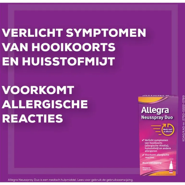 Allegra Neusspray Duo werkt snel & effectief, voorkomt allergische reacties en maakt niet slaperig.