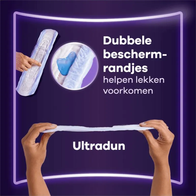 Always Discreet Nacht verbanden voor urineverlies bieden je volledige* bescherming en optimale discretie, zelfs tijdens de nacht.