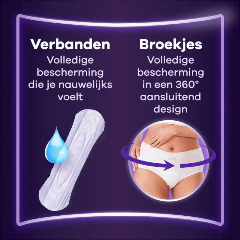 *Gebasseerd op de 5 dimensies van Always bescherming: betrouwbare bescherming bij urineverlies, onmiddellijke absorptie, bescherming tegen geurtjes, discreet design, zacht voor de huid.