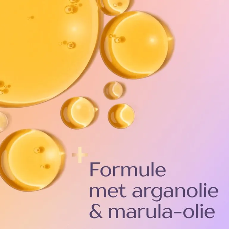 Afhankelijk van de dikte en lengte van je haar, wrijf 1-3 pompjes tussen je handpalmen en breng aan op de lengtes en punten van (handdoek)droog haar.