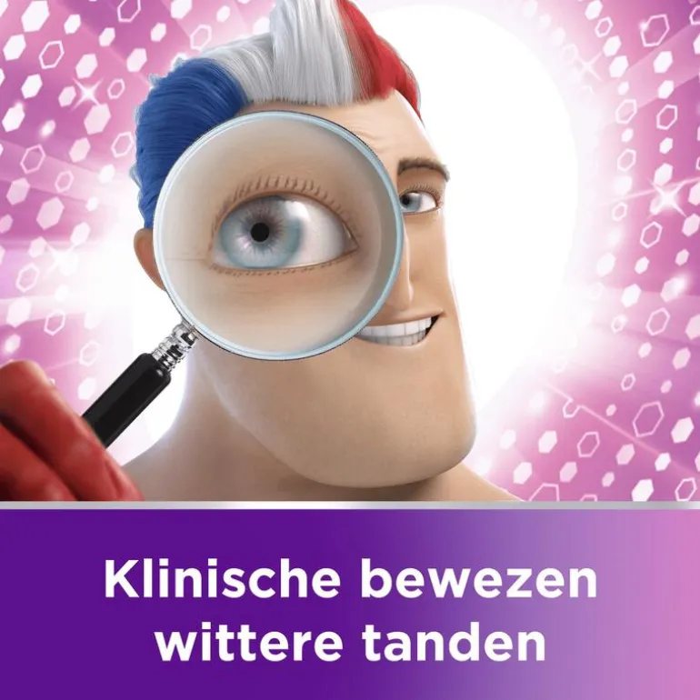 Aqua, Sorbitol, Hydrated Silica, Glycerin, Pentasodium Triphosphate, PEG-6, Sodium Lauryl Sulfate, Aroma, Alumina, Xanthan Gum, Cocamidopropyl Betaine, Titanium Dioxide,Carrageenan, Sodium Fluoride, Sodium Saccharin, Sodium Hydroxide, Limonene, CI 73360, CI 74260, CI 74160. Bevat Natriumfluoride (1450 ppm F¯).