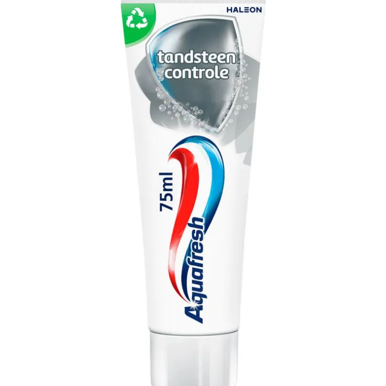 De klinisch geteste Aquafresh Tandsteen Controle tandpasta voor gezonde tanden formule bevat reinigende microdeeltjes (1) helpt tandplak op milde wijze te verwijderen* (2) vormt een beschermende laag om je tanden (3) en helpt zo de opbouw van tandplak en tandsteen tegen te gaan.