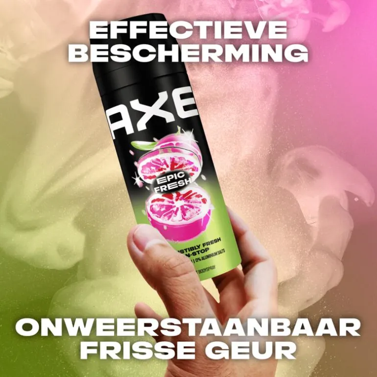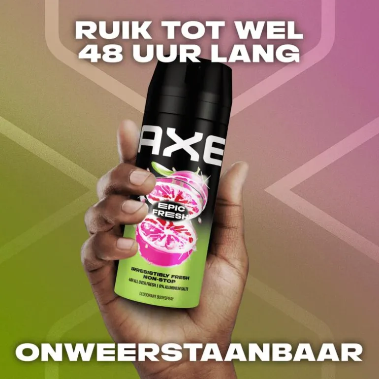 - Met AXE Epic Fresh Deodorant Bodyspray ruik je 48 uur onweerstaanbaar