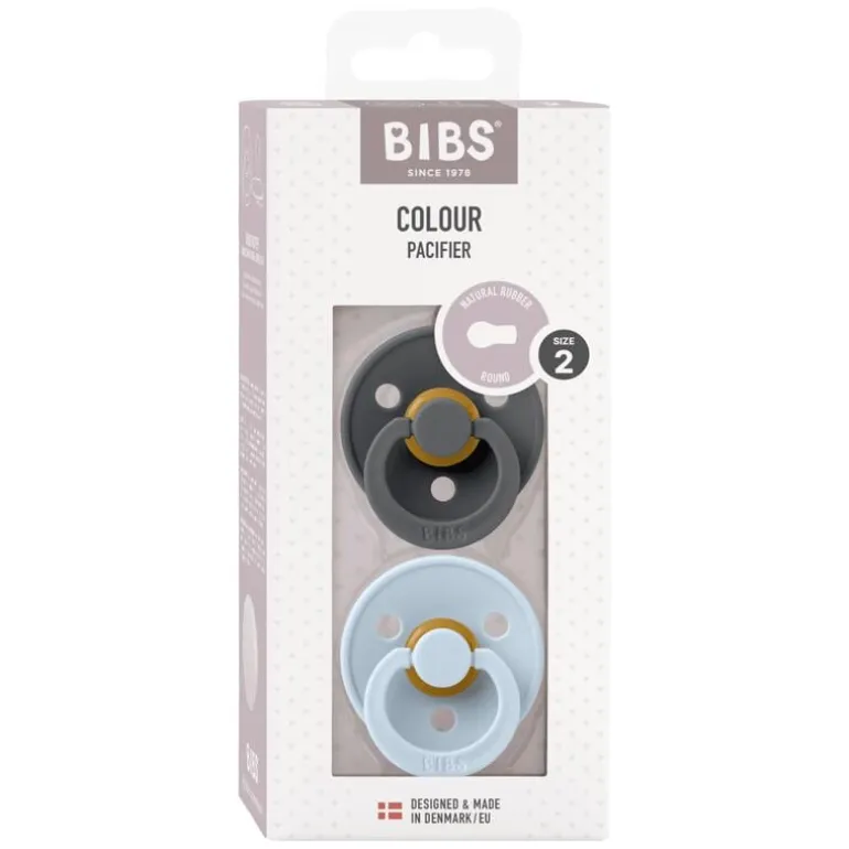 BIBS Colour is de originele BIBS fopspeen en is al meer dan 40 jaar op de markt. Het heeft het kenmerkende ronde BIBS-schild met drie ventilatiegaten en een ronde BIBS-gegraveerde handgreepring. Het schild is zorgvuldig ontworpen om weg te buigen van de gevoelige en gevoelige huid rond de mond van de baby om vochtophoping te voorkomen. Het schild is gemaakt van food-grade materiaal.