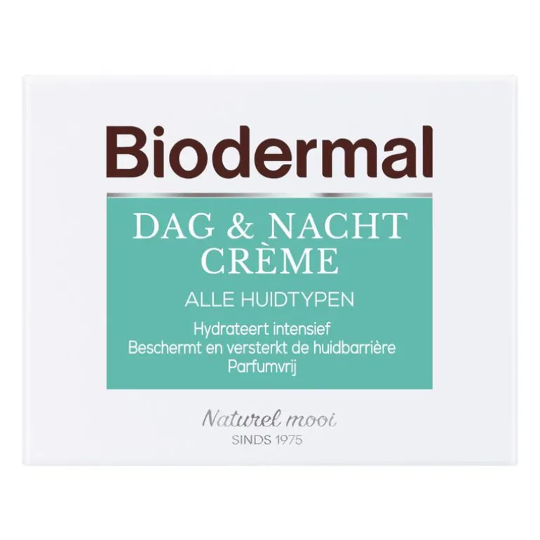Biodermal dag & nachtcrème voor alle huidtypen is een effectieve en rijke crème. De crème combineert de verzachtende eigenschappen van een dagcrème met de voedende en herstellende eigenschappen van een nachtcrème.Ontdek de voordelen: