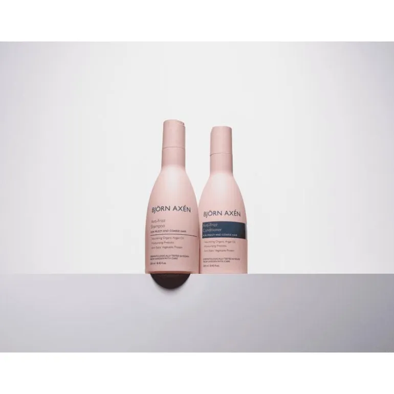 De Anti-Frizz Shampoo van Björn Axén is dé oplossing voor pluizig en onhandelbaar haar (ook heel fijn voor krullend haar). Deze shampoo bevat biologische arganolie en prebiotica die je haar voeden, beschermen en een prachtige glans geven. De plantaardige eiwitten bestrijden effectief pluizigheid, waardoor je haar zacht, glad en makkelijk handelbaar wordt. Kies voor de Anti-Frizz Shampoo en geniet van pluisvrij, glanzend haar!
