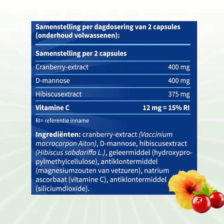 BlaseBerry biedt een unieke combinatie van vitamine C, gestandaardiseerde Cranberry extract 34:1 (Cran-Max®) en natuurlijke D-Mannose. Vitamine C verhoogt en ondersteunt jouw weerstand, speelt een belangrijke rol bij het afweersysteem en is tevens eenantioxidant. Cran-Max® is een uniek Cranberry extract. In dit extract wordt de gehelecranberry (vruchtvlees, schil, zaad, zuren en sap) gebruikt; niets gaat verloren. Tijdens de productie wordt gebruik gemaakt van een gepatenteerde techniek (BioShield®) waardoor alle bestanddelen goed worden bewaard. D-Mannose is een soort suiker (monosaccharide) zonder invloed op de suikerspiegel.