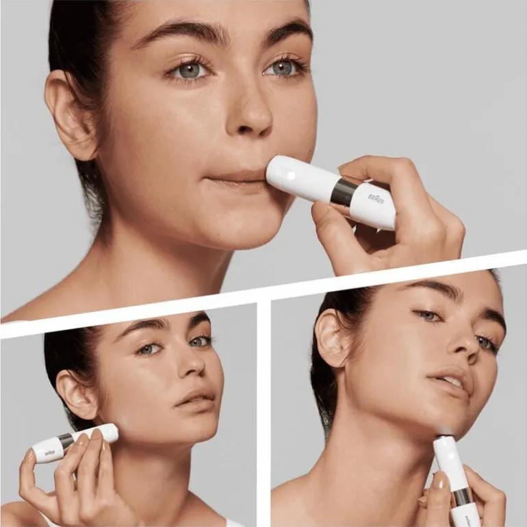 De Braun Mini Onthaarder is een sierlijk ontworpen, kleine elektrische gezichtsonthaarder voor vrouwen die snel en zacht onthaart.