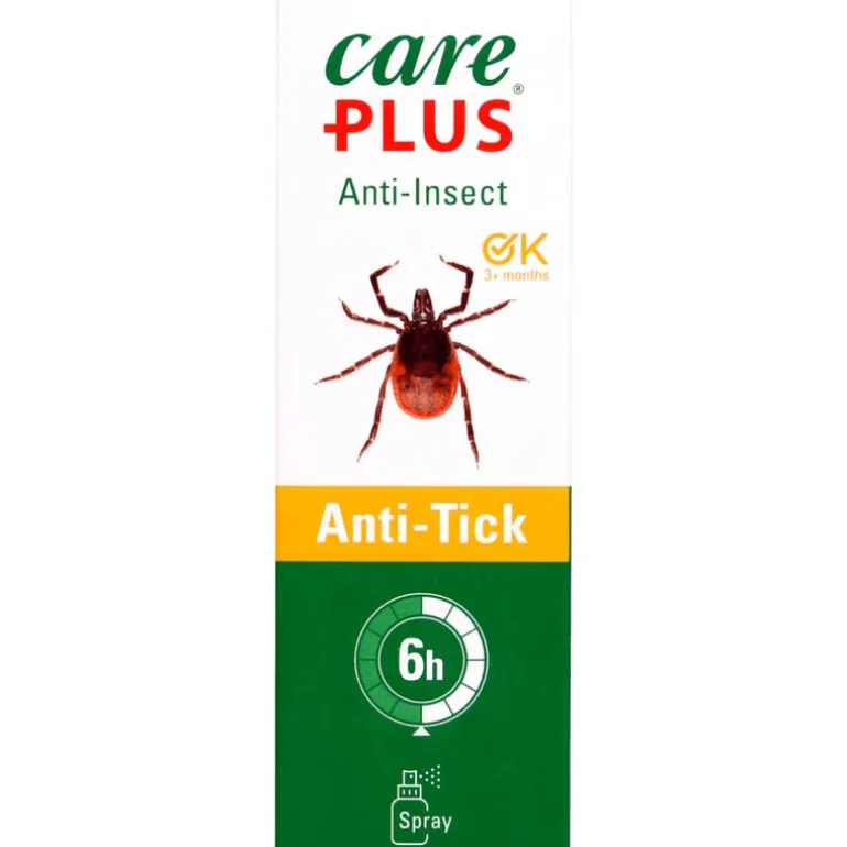 Care Plus® Anti-Insect Anti-Tick Spray beschermt de gebruiker gemiddeld 4-6 uur tegen teken.