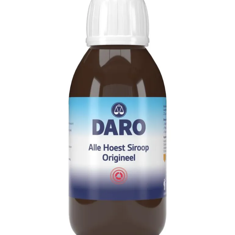Daro Alle Hoest Siroop met aangename drop-anijs smaak werkt snel en effectief. Het behandelt symptomen van alle soorten hoest: vastzittende-, productieve-, droge,- en prikkelhoest en verlicht keelpijn. De siroop creëert een beschermend filmlaagje in de keel dat zorgt voor een snelle verlichting van droge- en kriebelhoest door de verzachtende eigenschappen. Daarnaast wordt eventueel taai slijm opgelost waardoor vastzittende- en productieve hoest verdwijnen. Daro Alle Hoest is een medisch hulpmiddel.