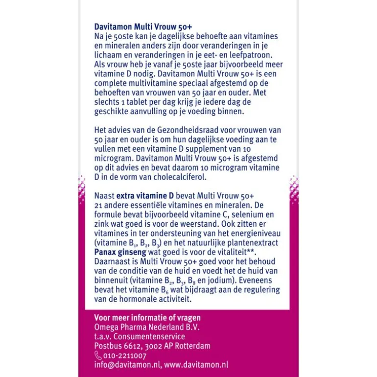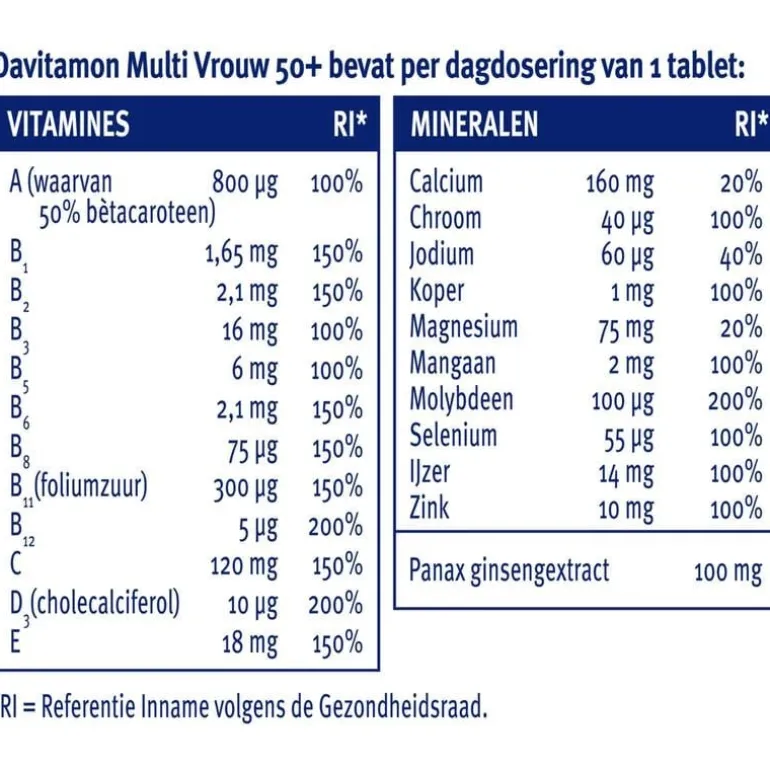 Aanbevolen gebruik: 1 tablet per dag. De tablet met voldoende water innemen, bij voorkeur tijdens of na de maaltijd. De tablet niet stukkauwen, maar in z’n geheel of in tweeën gebroken doorslikken. Geschikt voor vrouwen vanaf 50 jaar. Het aanbevolen gebruik niet overschrijden.