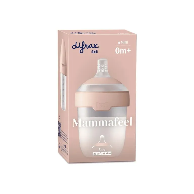 Difrax LOVI heeft een innovatieve Mammafeel fles ontwikkeld die qua vorm, textuur en dynamiek zoveel mogelijk op de moederborst lijkt. Het zachte gevoel zoals mama’s huid zorgt voor een gemakkelijke en veilige overgang van borst naar fles.