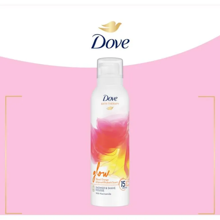 DOVE BATH THERAPY GLOW DOUCHE- & SCHEERSCHUIM MET NIACINAMIDE VOOR EEN STRALENDE HUID IS GESCHIKT VOOR SCHEREN ONDER DE DOUCHE.• Dove Bath Therapy Glow Douche- & Scheerschuim is verrijkt met niacinamide• Ondersteunt je huidbarrière, waardoor je huid er gezond en stralend uitziet• Een douchemousse met de heerlijke geur van bloedsinaasappel en rabarber• De douchegel zorgt voor een stralende huid met een gezonde ‘glow’• Het zachte schuim is geschikt om mee te scheren onder de douche• Het doucheschuim is verpakt in een 100% recyclebare aluminium verpakking