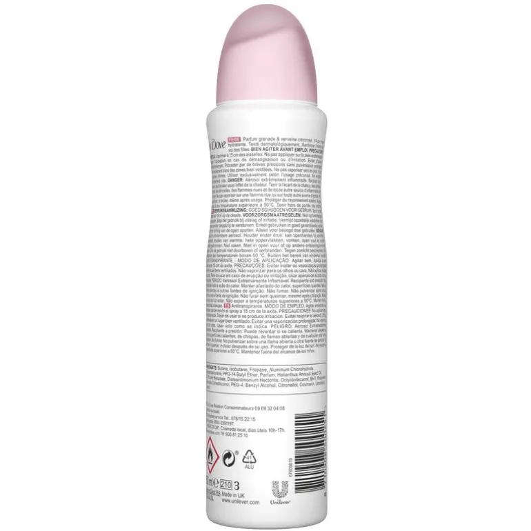 Iedereen kent natuurlijk dat heerlijke frisse gevoel als je net uit de douche komt. Dat gevoel wil je het liefst de hele dag vasthouden. Met Dove Go Fresh Pomegranate Anti-transpirant Spray kan dat! Deze deodorant beschermt je 48 uur lang tegen transpiratie en heeft een frisse geur, precies wat je nodig hebt tijdens drukke en warme dagen. Dove Go Fresh Pomegranate Anti-transpirant Spray is de enige deodorant die naast de 48 uur bescherming tegen transpiratie, ook je huid verzorgt. Het bevat namelijk de unieke 1/4 hydraterende crème van Dove en vitamine E. De okselhuid wordt hier voelbaar zachter en zichtbaar gladder door. Je oksels voelden nog nooit zo zacht! Bovendien bevat deze milde formule 0% alcohol, dus is deze deodorant ook geschikt voor de gevoelige huid. Laat zelfvertrouwen beginnen bij je oksels, en voel je optimaal verzorgd en beschermd met Dove Go Fresh Grapefruit Anti-transpirant Spray. Geniet van de frisse, pittige geur van granaatappel, gecombineerd met een vleug citroen verbena. Een heerlijke, frisse geur voor als je een keer wat anders wil. Ook perfect voor tijdens de warme zomerdagen! Probeer nu Dove Go Fresh Pomegranate zelf en ervaar onze beste (dagelijkse) verzorging voor je oksels. Voel je mooi met Dove!
