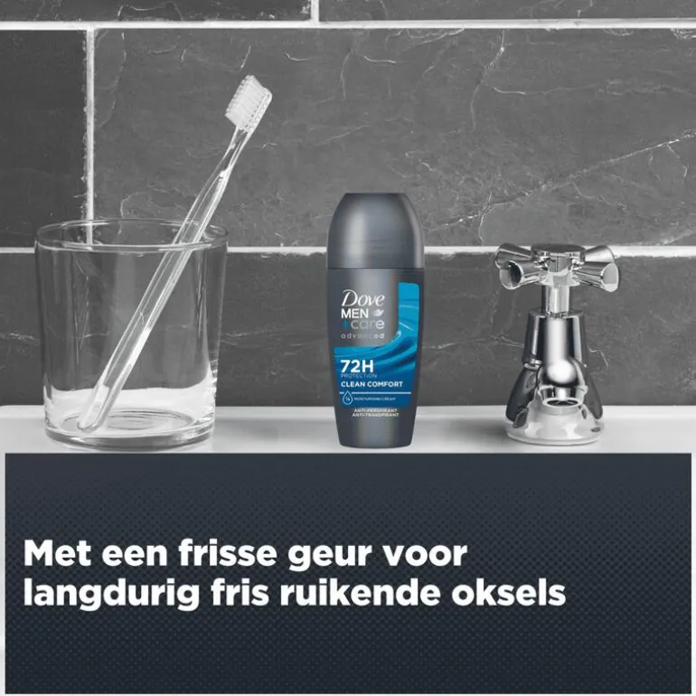 Dove Men+Care Advanced Clean Comfort Anti-Transpirant Deodorant Roller met antibacteriële geurbestrijding biedt tot 72 uur lang krachtige bescherming tegen zweet en beschermt je kleding.