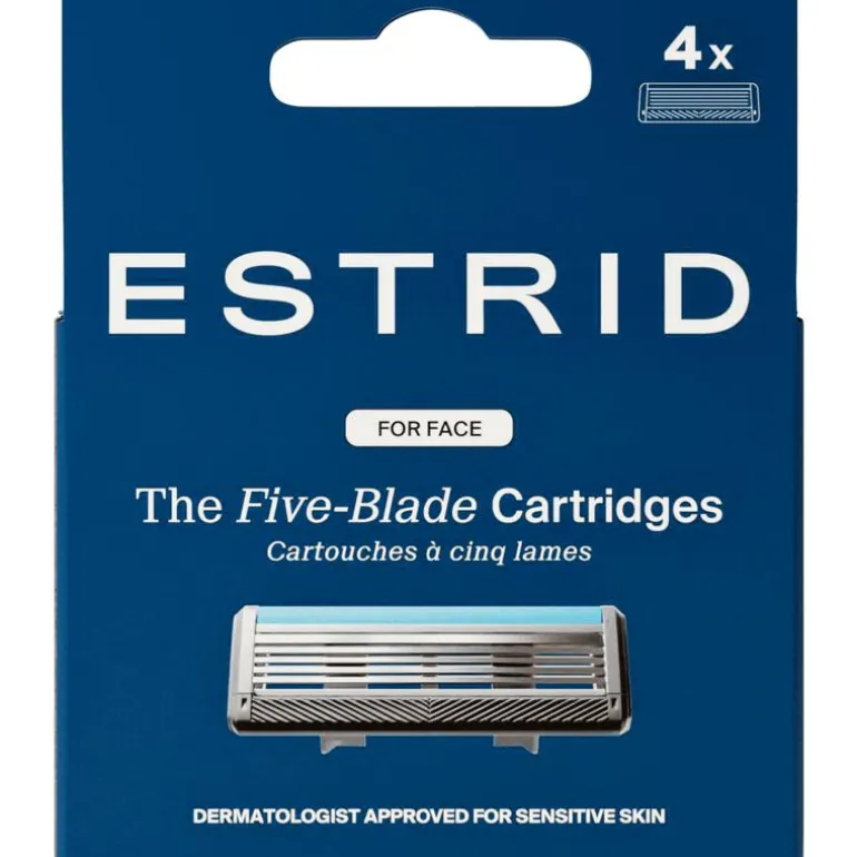 Het Estrid gezichtsscheermes is goedgekeurd door dermatologen voor de gevoelige huid en heeft vijf scherpe, dunne diamant-gecoate stalen mesjes voor een gladde, comfortabele scheerbeurt. De scheermesjes hebben een vegan hydratatiestrip met vitamine E om de huid te beschermen, irritatie te voorkomen en soepel over de huid te glijden. Deze mesjes zijn compatibel met alle Estrid handvaten.