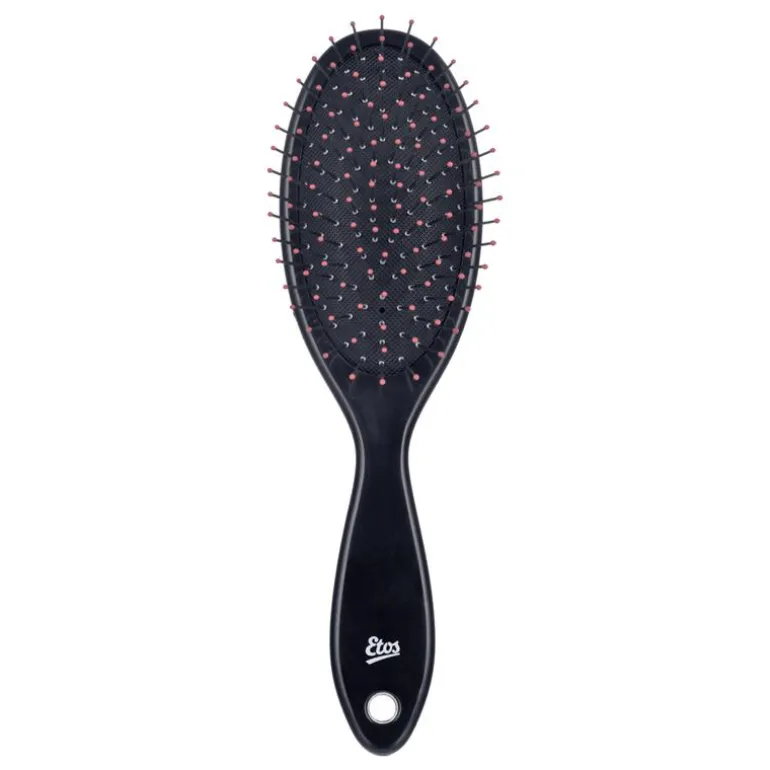 Ben jij op zoek naar een simpele en effectieve borstel voor dagelijks gebruik? De Etos Basic Borstel is perfect om je haar snel en eenvoudig te stylen. De borstel is ontworpen met stevige metalen pinnen met omhulde nopjes, waardoor je haar niet statisch wordt tijdens het borstelen. Dankzij het ergonomische handvat ligt de borstel comfortabel in de hand, wat zorgt voor optimaal gebruiksgemak.
