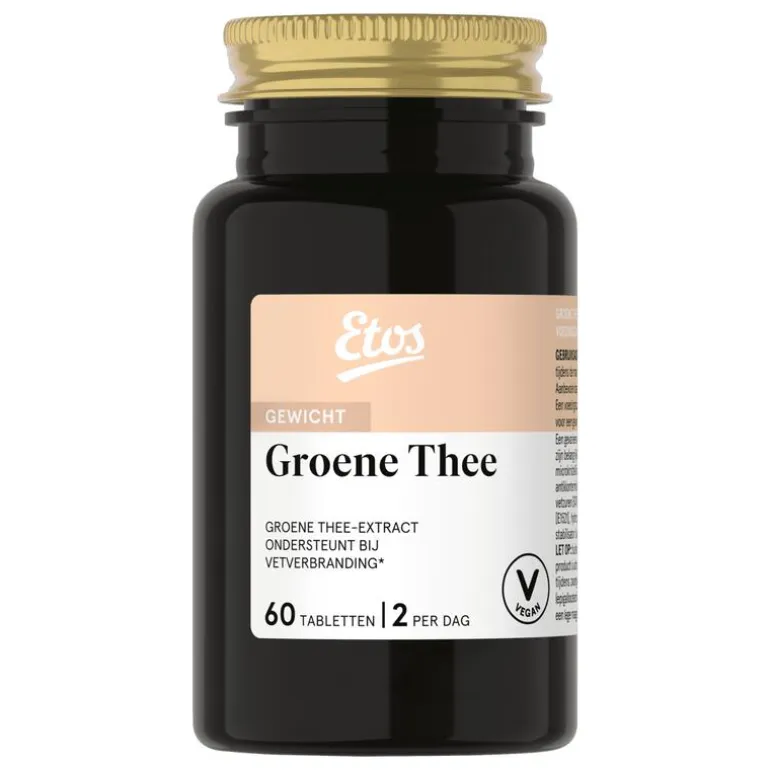 Etos Groene Thee is een voedingssupplement met groene thee-extract die vetverbranding ondersteunt*. Het product is bedoeld als aanvulling op een gevarieerde, evenwichtige voeding en een gezonde levensstijl. De tabletten zijn geschikt voor volwassenen en eenvoudig dagelijks in te nemen tijdens de maaltijd. Een voedingssupplement is geen vervanging van een gevarieerde voeding en een gezonde levensstijl.