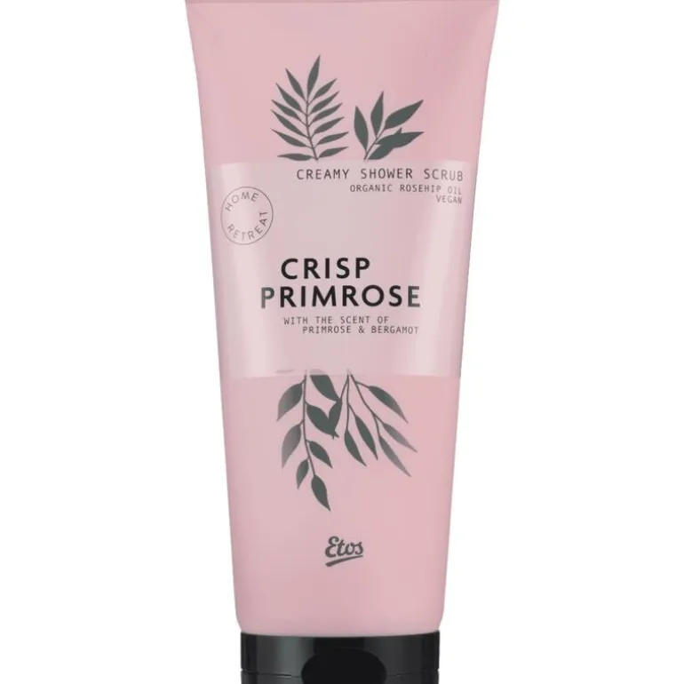 Etos Crisp Primrose Creamy shower scrub 200 ml verwijdert op milde wijze dode huidcellen. Deze crèmige douchescrub laat je huid stralen en bevat organic rozenbottelolie en abrikoos scrubdeeltjes. Ervaar een zachte en gladde huid met de delicate geur van sleutelbloem en bergamot.
