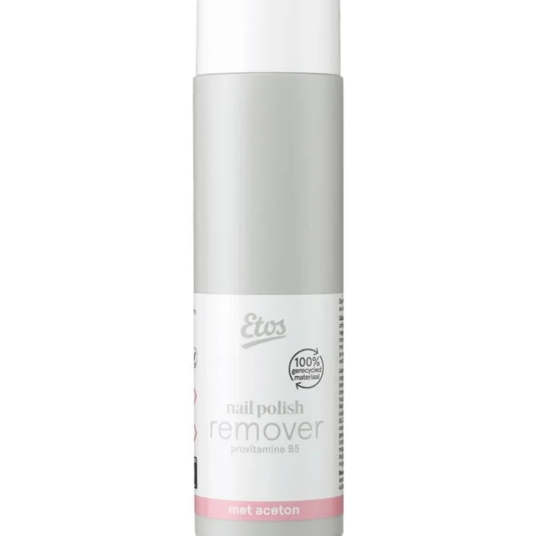 Etos Nail polish remover met aceton 235 ml verwijdert moeiteloos nagellak. De nail polish remover verwijdert snel en efficiënt alle soorten nagellak. De remover bevat provitamine B5 en droogt de nagels niet uit.