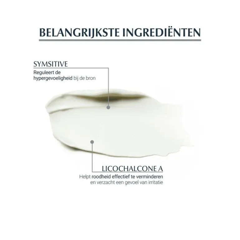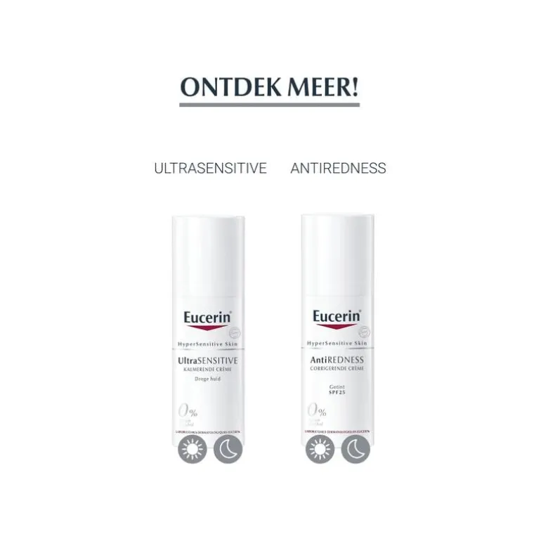 Eucerin Hypersensitive AntiREDNESS heeft een 0% formule, bevat tevens zeer weinig ingrediënten en is verpakt in een besmettingsvrije flacon. Hierdoor wordt de kans op irritaties geminimaliseerd. Daarnaast zorg SymSitive ervoor dat de huid direct gekalmeerd wordt. Lichochalcone is toegevoegd om roodheid te verminderen en ontsteking tegen te gaan.
