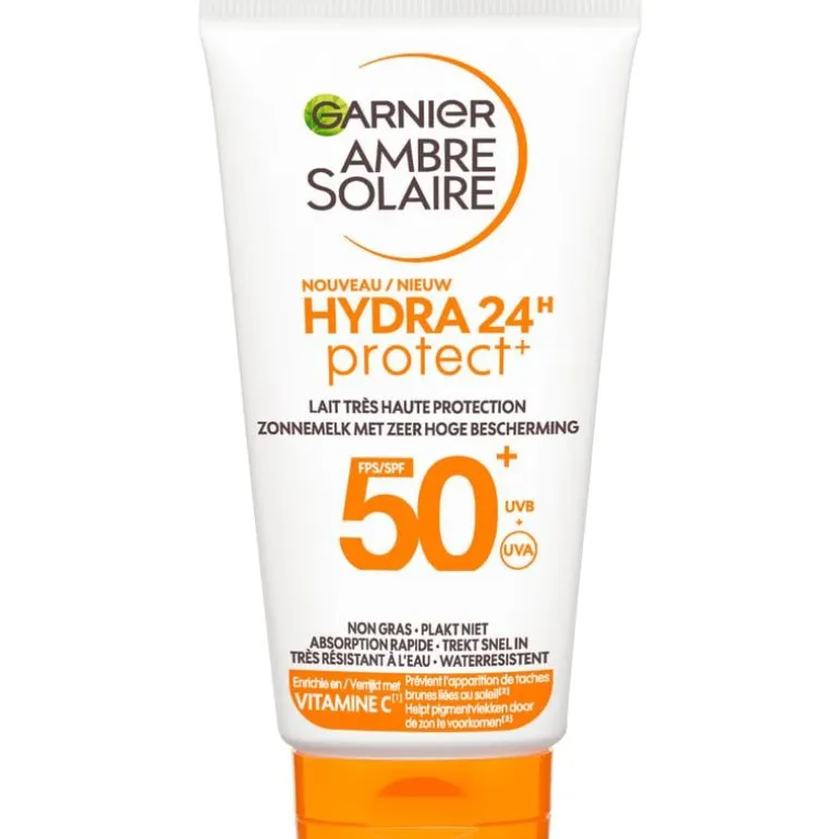 Ambre Solaire Hydra 24H Protect SPF 50+ reisformaat is een zonnebrandcrème met vitamine Cg die zeer hoge bescherming biedt tegen UVA- en UVB-stralen. De beschermende zonnemelk helpt tekenen van huidveroudering door de zon te voorkomen en hydrateert 24 uur lang.