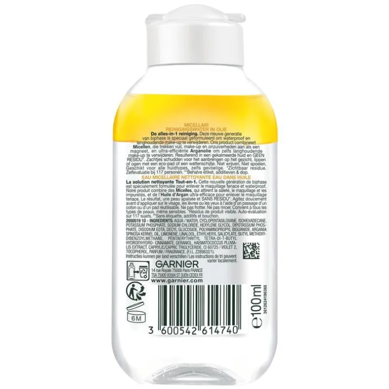 Garnier SkinActive Micellair Reinigingswater voor Langhoudende en Waterproof Make-up is verrijkt met micellen voor het reinigen en verwijderen van alle soorten make-up. Het reinigingswater kalmeert de huid en heeft een zachte, geurloze formule.
