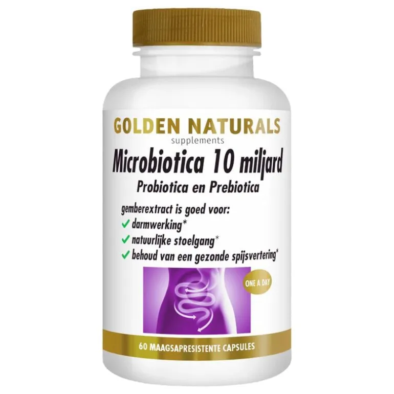 Met Microbiotica 10 miljardgeef je je lichaam dagelijks wat extra zorg. Het bevat gemberextract is goed voor darmwerking*, gemberextract is goed voor natuurlijke stoelgang* en gemberextract is goed voor behoud van een gezonde spijsvertering*, wat je dagelijks welzijn ondersteunt. Deze 60 veganistische maagsapresistente capsules zijn makkelijk in te nemen en passen goed in een gezonde leefstijl.