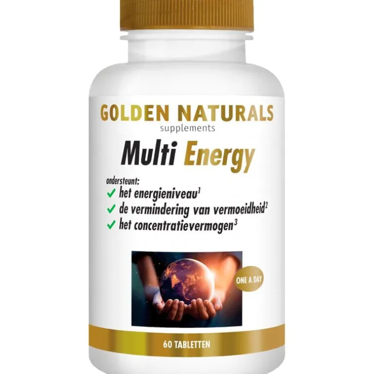 Multi Energy van Golden Naturals is een complete multi in 60 veganistische tabletten. Ondersteunt je energieniveau en helpt vermoeidheid te verminderen. Ideaal als je actief in het leven staat en fit wilt blijven.