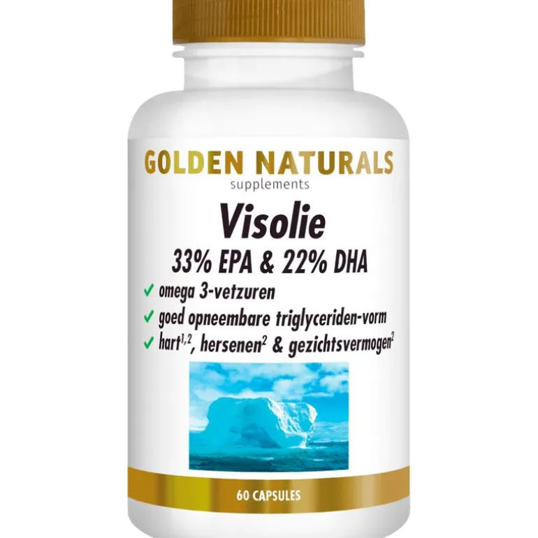 Visolie 33% EPA & 22% DHA is samengesteld met ingrediënten die elkaar goed aanvullen. Het bevat omega‑3‑vetzuren in een goed opneembare triglyceridenvorm, die goed zijn voor het hart, de hersenen en het gezichtsvermogen. Met deze 60 softgelcapsules geef je jouw lichaam elke dag een waardevolle ondersteuning.