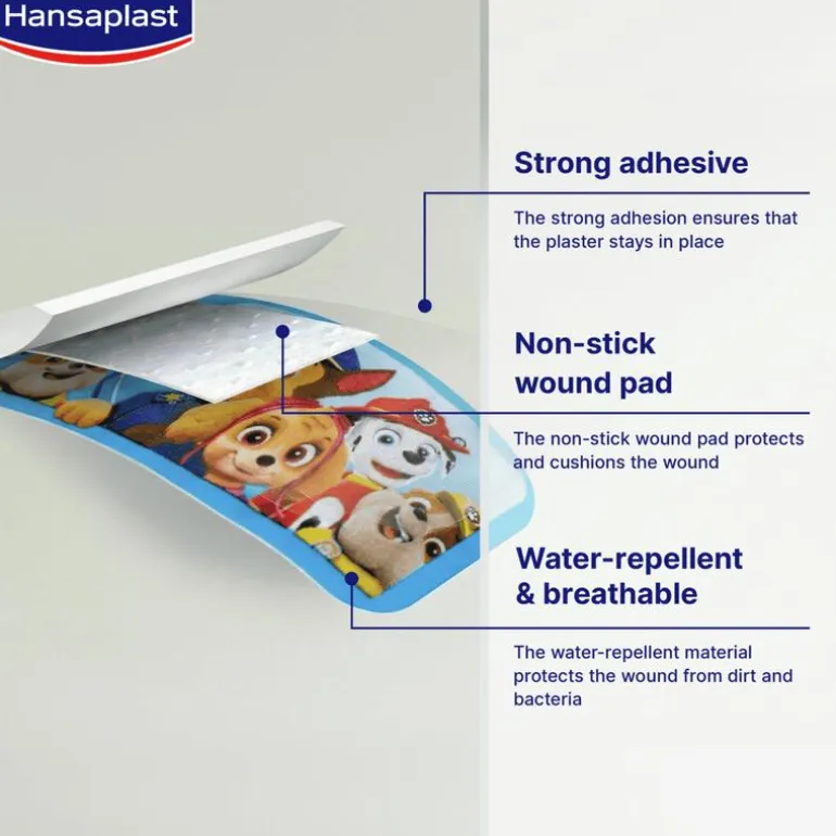 Hansaplast Paw Patrol Pleisters. Huidvriendelijke wondbescherming voor de gevoelige kinderhuid.