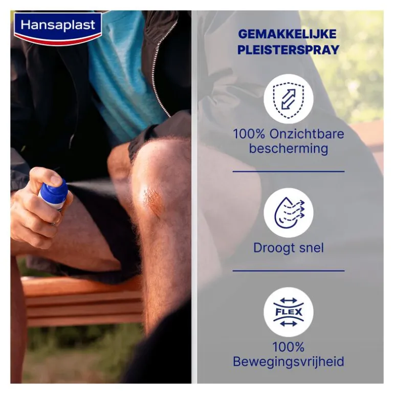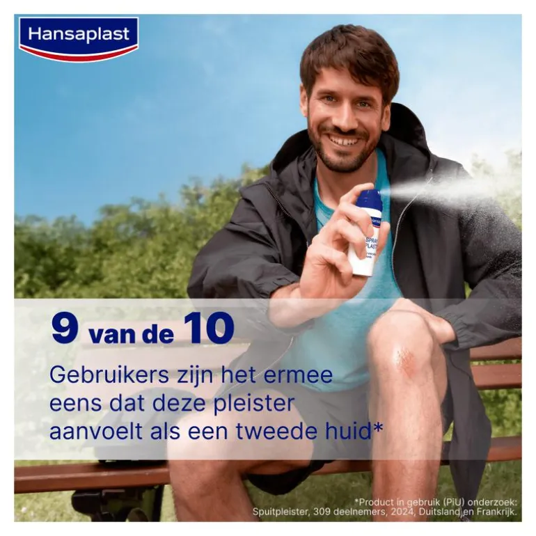 - 100% BEWEGINGSVRIJHEID: De Hansaplast Plaster Spray creëert een ultradunne en flexibele film die aanvoelt als een tweede huid en 100% bewegingsvrijheid biedt.