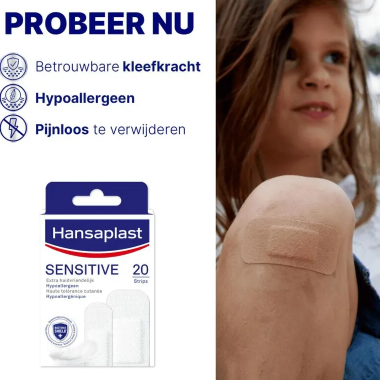 Hansaplast Sensitive Pleisters zijn zeer huidvriendelijk en zijn geschikt voor het bedekken van alle soorten kleine wondjes. Het comfortabele materiaal is hypoallergeen en flexibel.