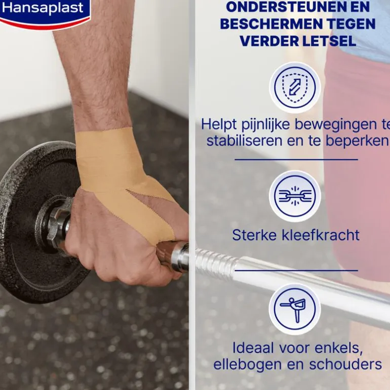 Hansaplast Sporttape is geschikt voor het intapen van je enkels, schouders en ellebogen. De extra brede tape biedt hierdoor de juiste ondersteuning.