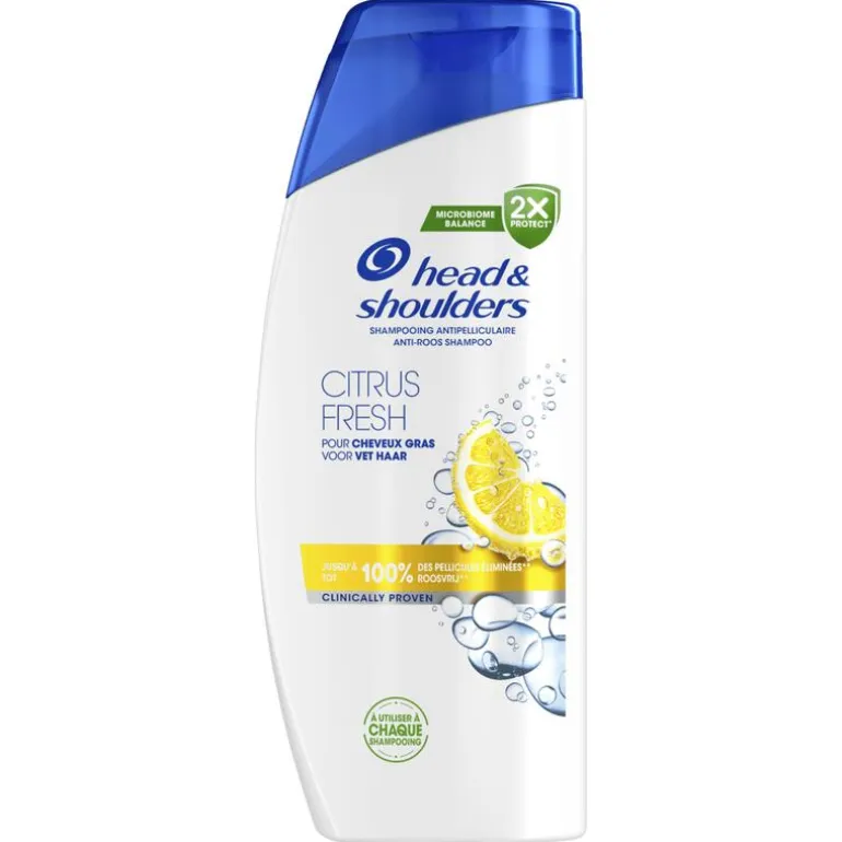 Head & Shoulders Citrus Fresh Anti-roos Shampoo voor vet haar werkt zelfs tegen hardnekkige roos. Een shampoo geschikt voor dagelijks gebruik voor zowel mannen als vrouwen, met een frisse citrusgeur en met onze Microbiome Balance formule die de hoofdoorzaak van roos aanpakt en het microbioom van de hoofdhuid in balans houdt. Werkt zowel tegen zichtbare als onzichtbare roos door 2x meer beschermende ingrediënten vrij te geven die zich in de poriën vastzetten om uiteindelijk te voorkomen dat hardnekkige roos terugkomt. De formule is klinisch bewezen, dermatologisch getest en heeft een evenwichtige pH waardoor je haar en hoofdhuid schoon en fris aanvoelen.