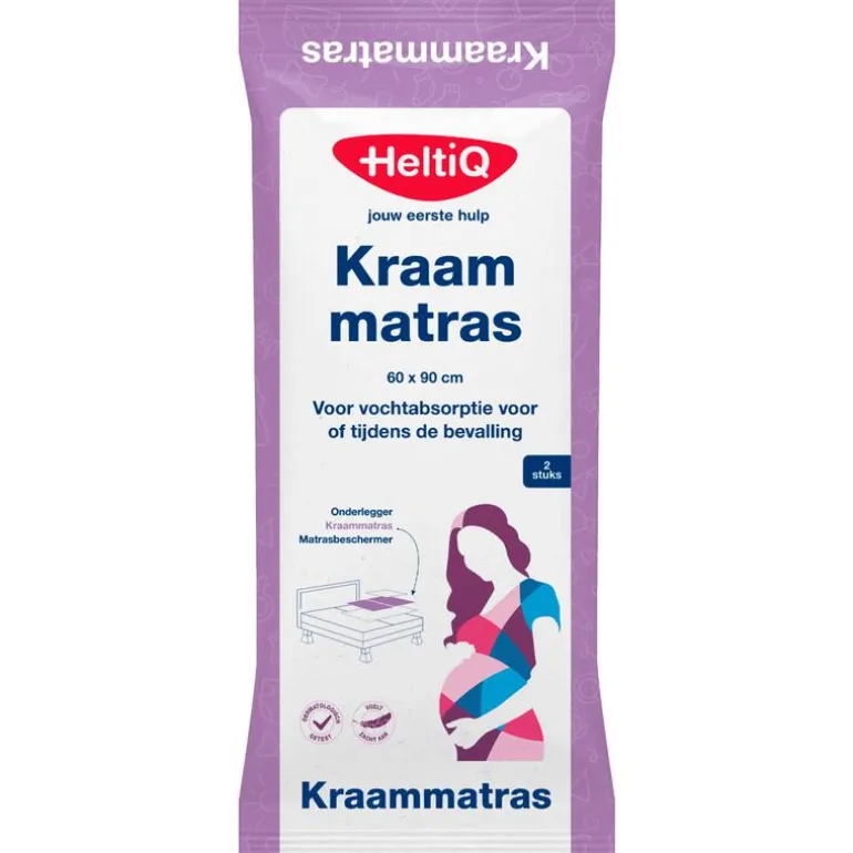 Het HeltiQ Kraammatras beschermt het matras en beddengoed tegen doorlekken van vruchtwater en/of bloed in de periode voor of tijdens de bevalling. Het kraammatras bestaat uit een hoog absorberende laag die vocht direct omzet in een gel en zo doorlekken voorkomt.