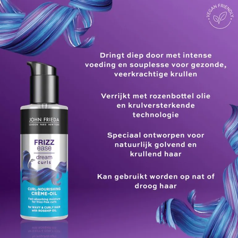 John Frieda Frizz Ease Dream Curls Advanced Hydrating Jelly brengt jouw krullen weer tot leven met een krulverzorgende en pluisbestrijdende formule. Deze jelly, verrijkt met hydraterende ingrediënten, geeft futloze golven, krullen en coily haar meer definitie, veerkracht en langdurige fixatie tot wel 24 uur. De formule met lichtgewicht Moringa-olie en hydraterende glycerine brengt extra vocht in voor een gladde, pluisvrije finish. Goedgekeurd volgens de Curly Girl Methode.