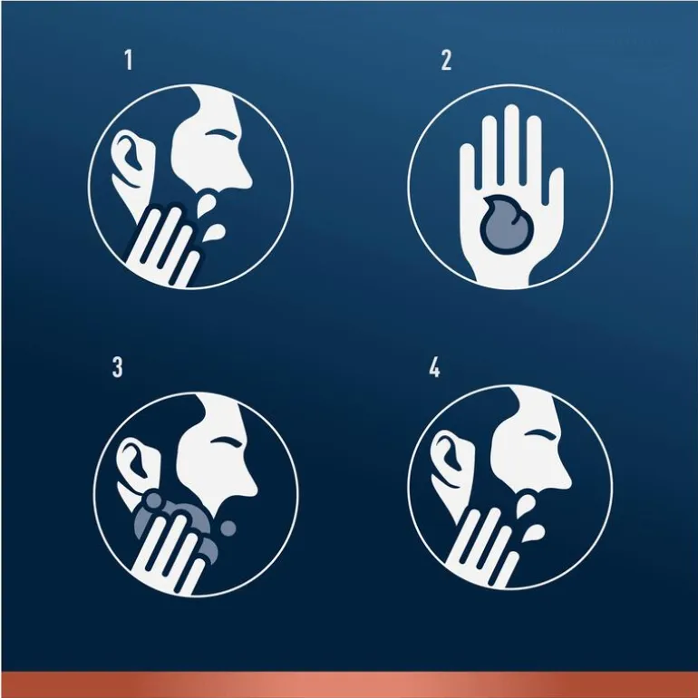 Stap 2: Wrijf de baardreiniger in je gezichtshaar en werk de shampoo van de wortel naar de punten van je gezichtshaar