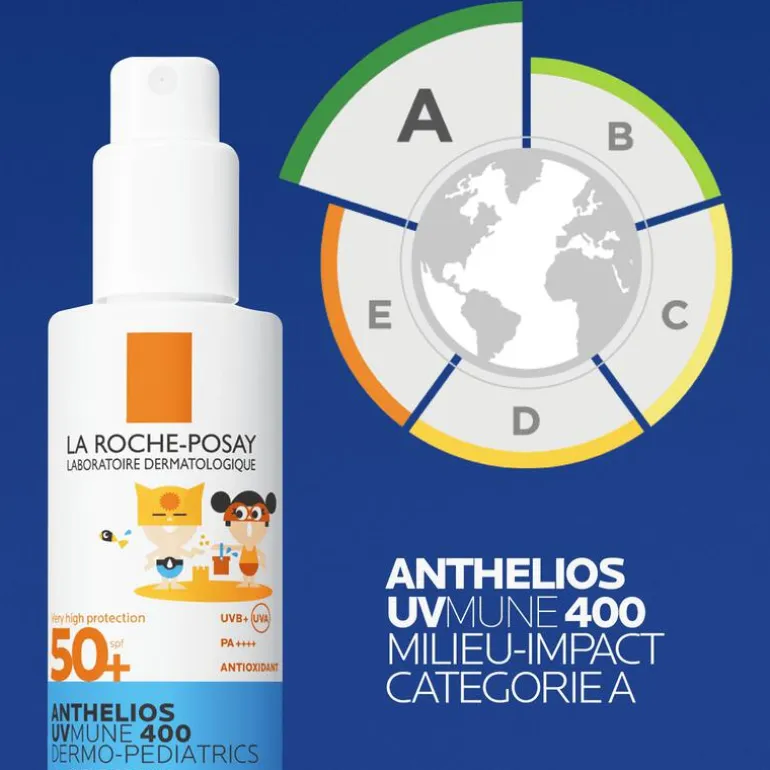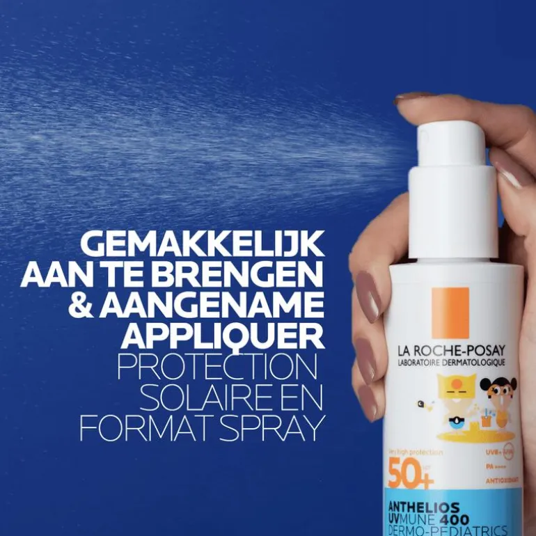 Anthelios Kind Zonnebrandspray UVMUNE SPF50+ biedt een zeer hoge bescherming tegen de zon voor kinderen.
