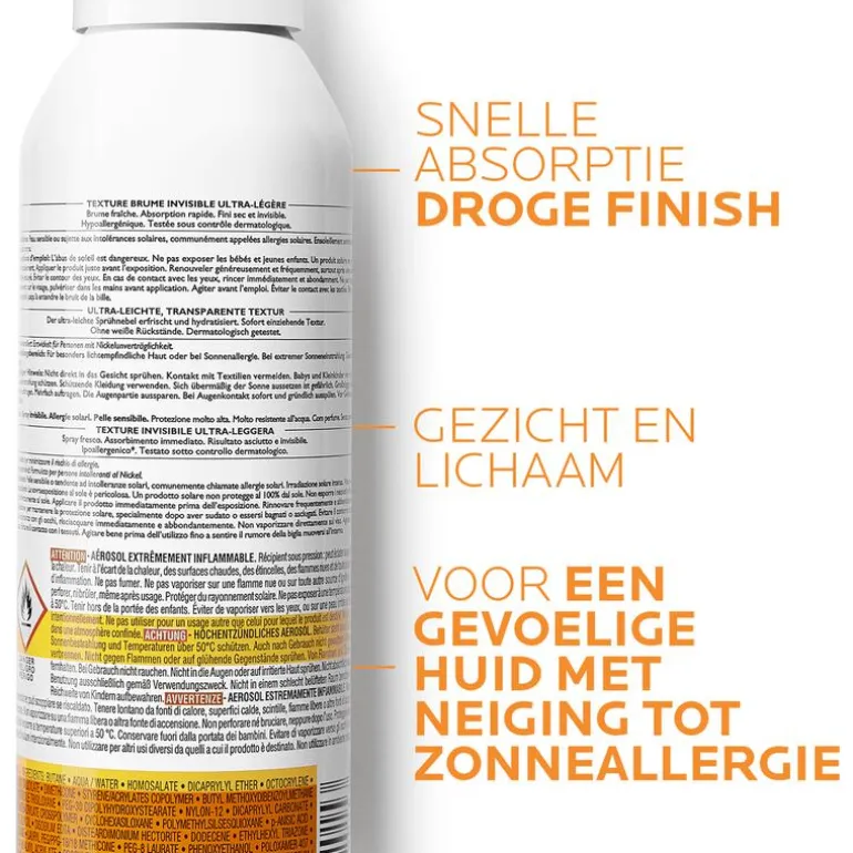 Zonnebrand mist voor dagelijks gebruik. Anthelios Zonnebrand mist met SPF 50+ is geschikt voor een zongevoelige huid.