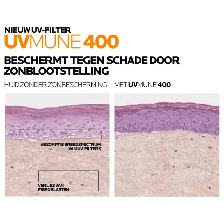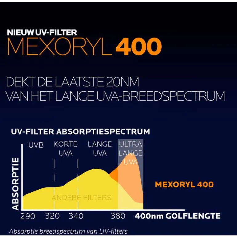 Anthelios UVMune 400 hydraterende crème SPF50+ bevat mexoryl 400, het meest effectieve UV-filter tegen de meest doordringende UV-stralen: langeUVA*. Onze ultieme bescherming (UVB + UVA + LANGE UVA) tegen diepe celbeschadiging. Getest op gevoelige, reactieve en intolerante huid. Geschikt voor alle huidtypen en alle fototypen. Zeer resistent tegen water, zweet en zand. Optimale tolerantie. Prikt niet in de ogen. Lichtgewicht textuur. Niet geparfumeerd. *(380 – 400nm)