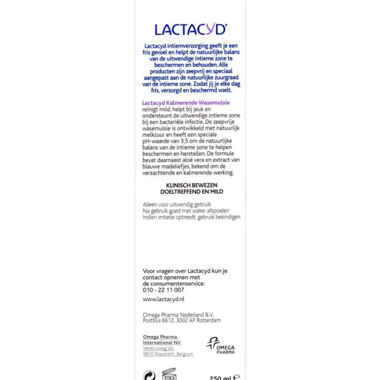 Lactacyd Kalmerende Wasemulsie reinigt en werkt kalmerend voor de uitwendige intieme zone.