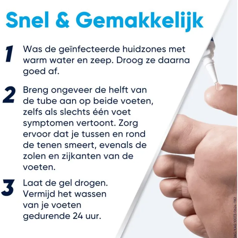 Voetschimmel behandelen met Lamisil Once is eenvoudig, maar voor het beste resultaat is het belangrijk dat het product op de juiste manier wordt gebruikt en aangebracht. 1. Was beide voeten en droog ze zorgvuldig af2. Verdeel de oplossing gelijkmatig over 2 voeten3. Laat 2 minuten drogen (niet inmasseren)4. Je voeten 24 uur niet wassen/nat maken