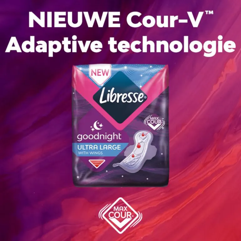 Libresse Ultra Thin Maandverband Goodnight 10 stuks is wat langer en heeft vleugels voor nog meer zekerheid gedurende de nacht. Het ongeparfumeerde maandverband volgt de natuurlijke lijnen van je lichaam en dankzij de unieke voor- en achterkant past het perfect en verschuift het niet. Het lange maandverband met vleugels is voorzien van het Roll.Press.Go systeem. Zo kun je het aandverbandje makkelijk, hygiënisch , discreet en geurloos afsluiten en weggooien. Libresse Ultra Thin Maandverband Goodnight biedt je drievoudige bescherming tegen doorlekken door de anti-lekrandjes en de snel absorberende kern!